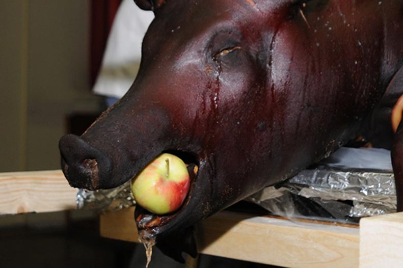 Näyttävä ja herkullinen; kokonainen savustettu sika juhliinne vartaassa tai lavetilla. Unohtumaton elämys.